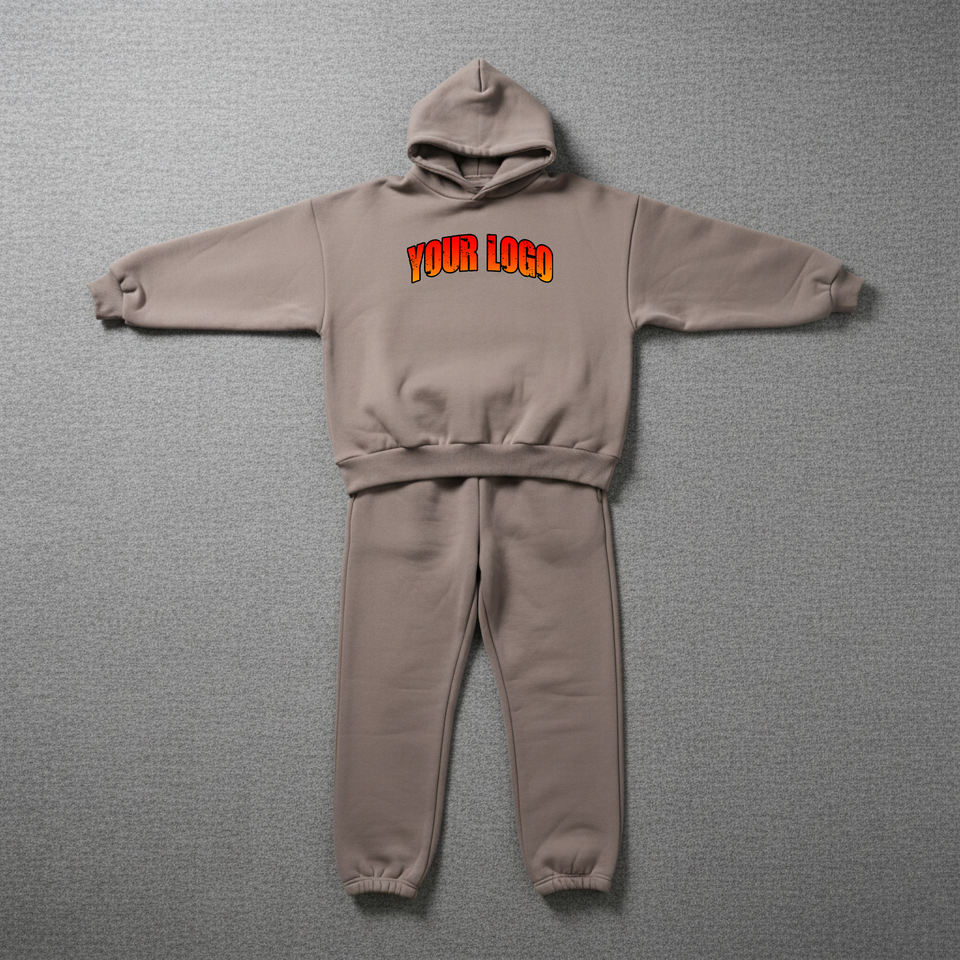 ชุดวอร์มแบบสวมหัวสำหรับผู้ชายผ้าขนแกะคอตตอน100% พิมพ์โลโก้แบบกำหนดเองกันยับไม่ยับไม่ยับฮิปฮอป2ชิ้น