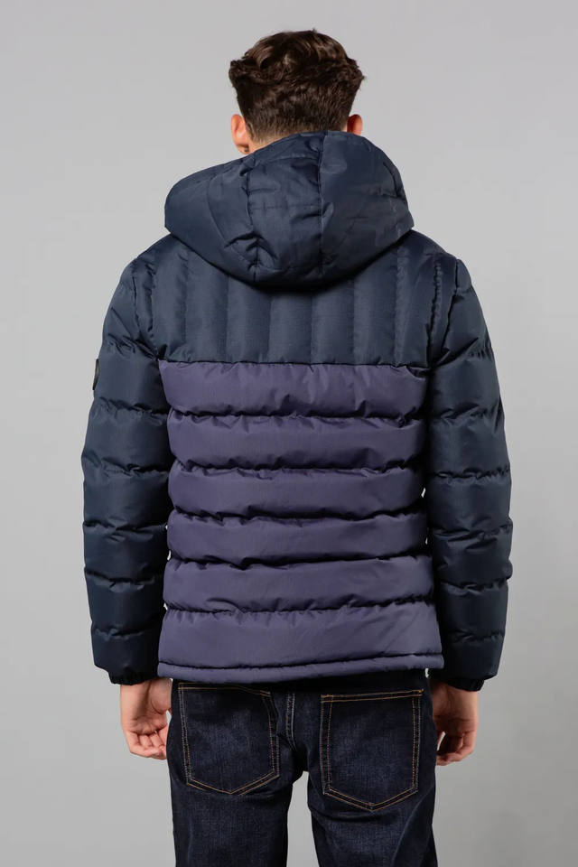 แจ็กเก็ตทรงปลาปักเป้าแบบบล็อกสีสำหรับผู้ชายเสื้อแจ็คเก็ตขนเป็ดแบบลำลองสำหรับฤดูหนาวพิมพ์โลโก้ได้ตามต้องการ