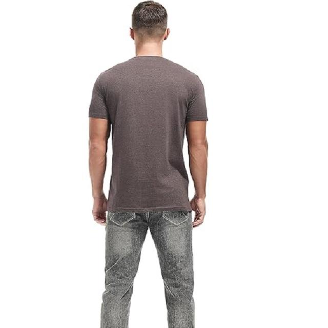 เสื้อยืดคอกลมแขนสั้นของผู้ชายทรงปกติทรงพอดีตัวปรับแต่ง100% ผ้าฝ้ายสีน้ำตาล