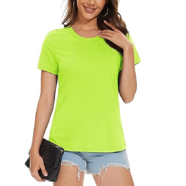 เสื้อยืดคอกลมแขนสั้นสำหรับสตรีทรงเข้ารูปปกติสีเขียวฟลูออเรสเซนต์สำหรับ100% ปรับแต่งได้