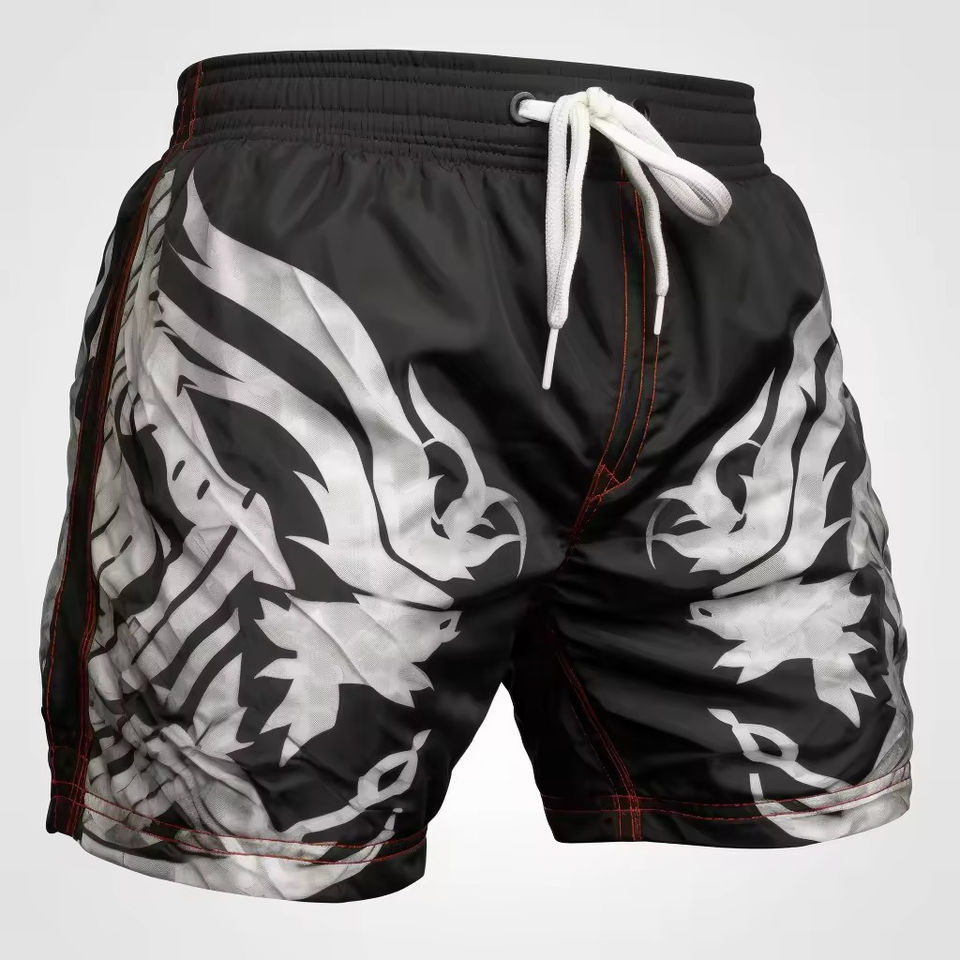 กางเกงขาสั้นผ้าโพลีเอสเตอร์สแปนเด็กซ์แบบไทยสำหรับผู้ชายแนวสตรีทเป็นมิตรต่อสิ่งแวดล้อมชุดฝึกต่อสู้ศิลปะการต่อสู้สำหรับฤดูร้อนปรับแต่ง100% ได้