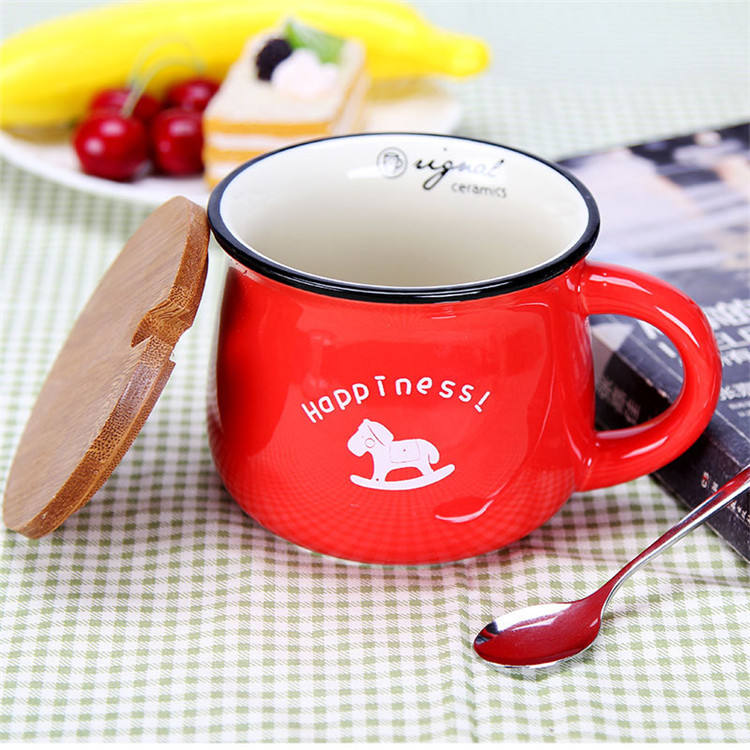ถ้วยกาแฟเซรามิกเคลือบขนาดใหญ่สำหรับเดินทางขนาด150มล. พร้อมช้อนไม้ไผ่สำหรับใส่นมสามารถปรับแต่งได้