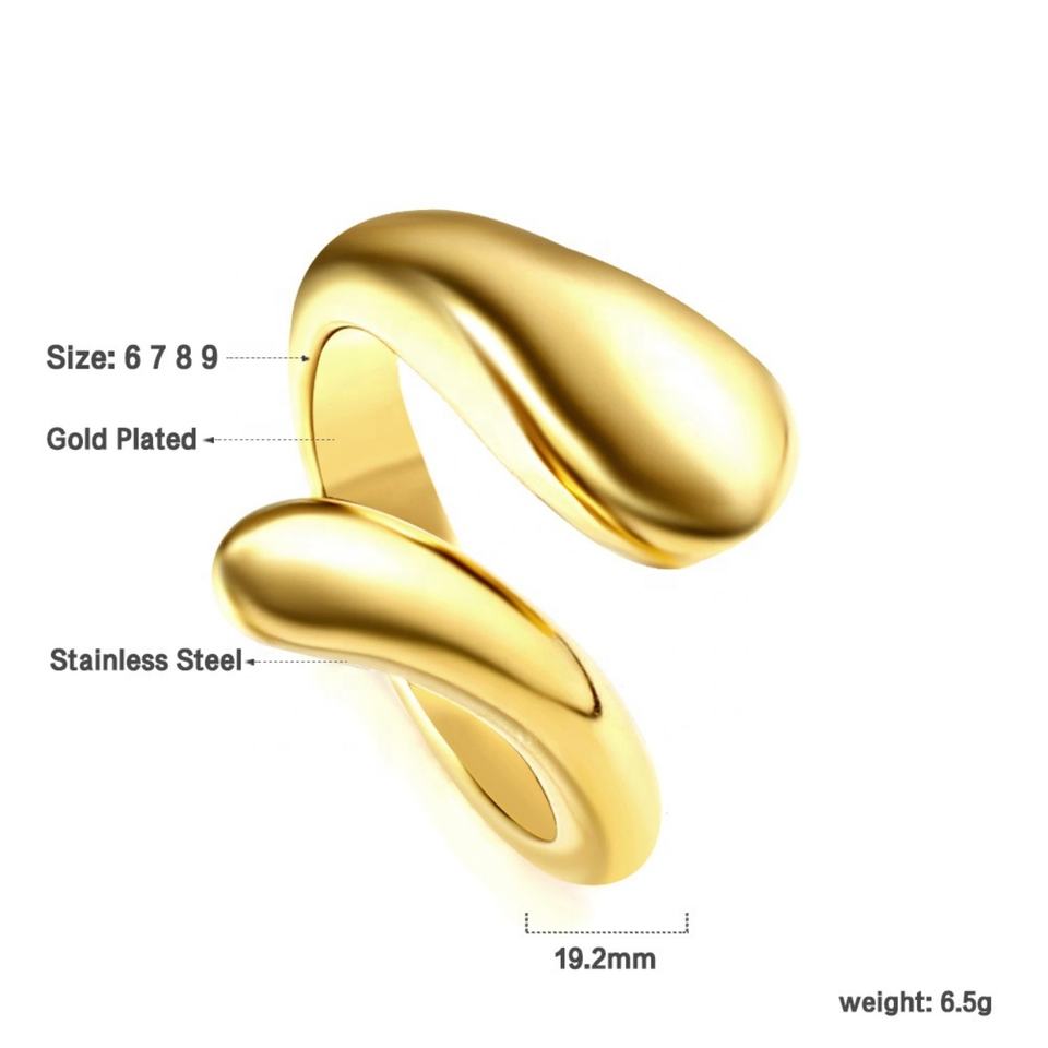 แหวนนิ้วสแตนเลสชุบทอง 18K ปรับแต่งได้ สำหรับผู้หญิง ทันสมัย กันน้ำ ไม่หมอง แหวนวงเปิดเรียบหรู