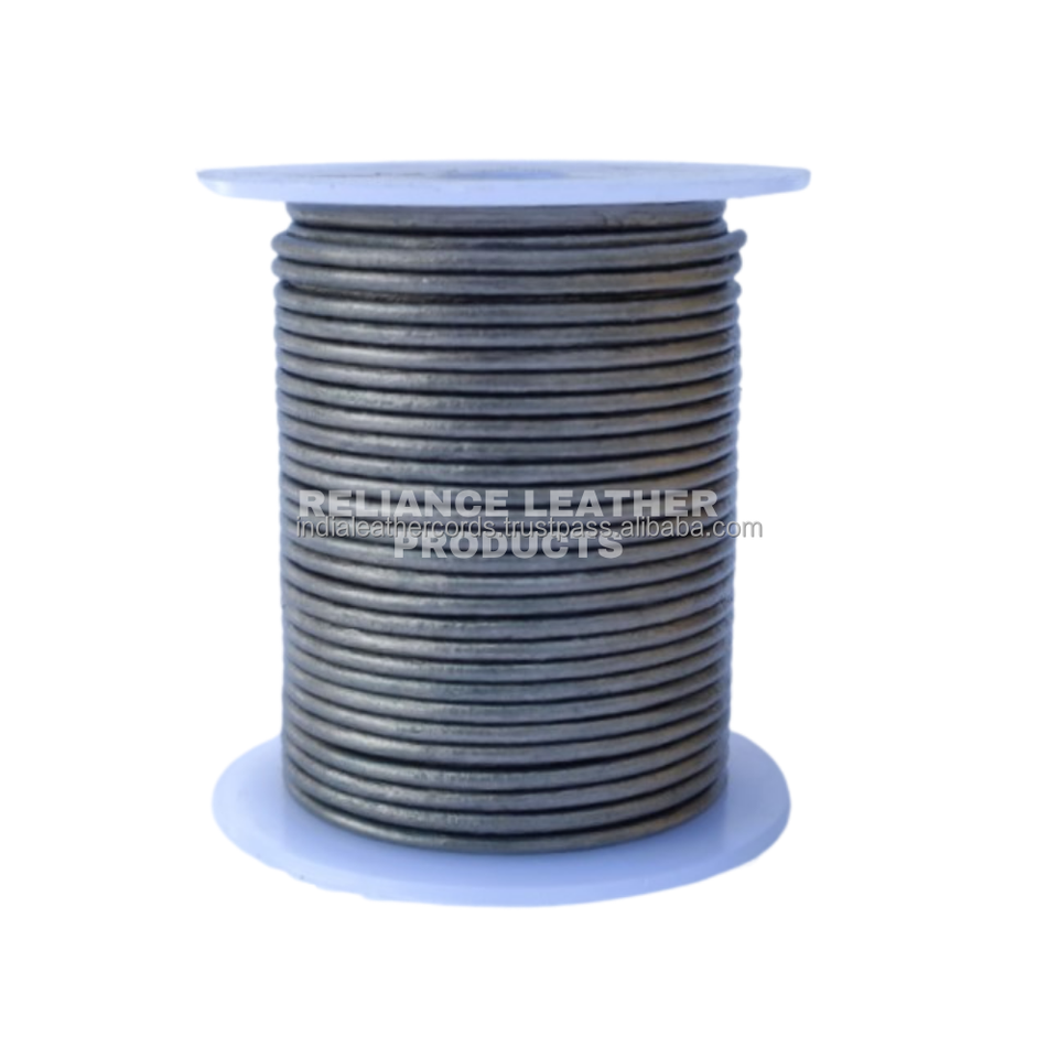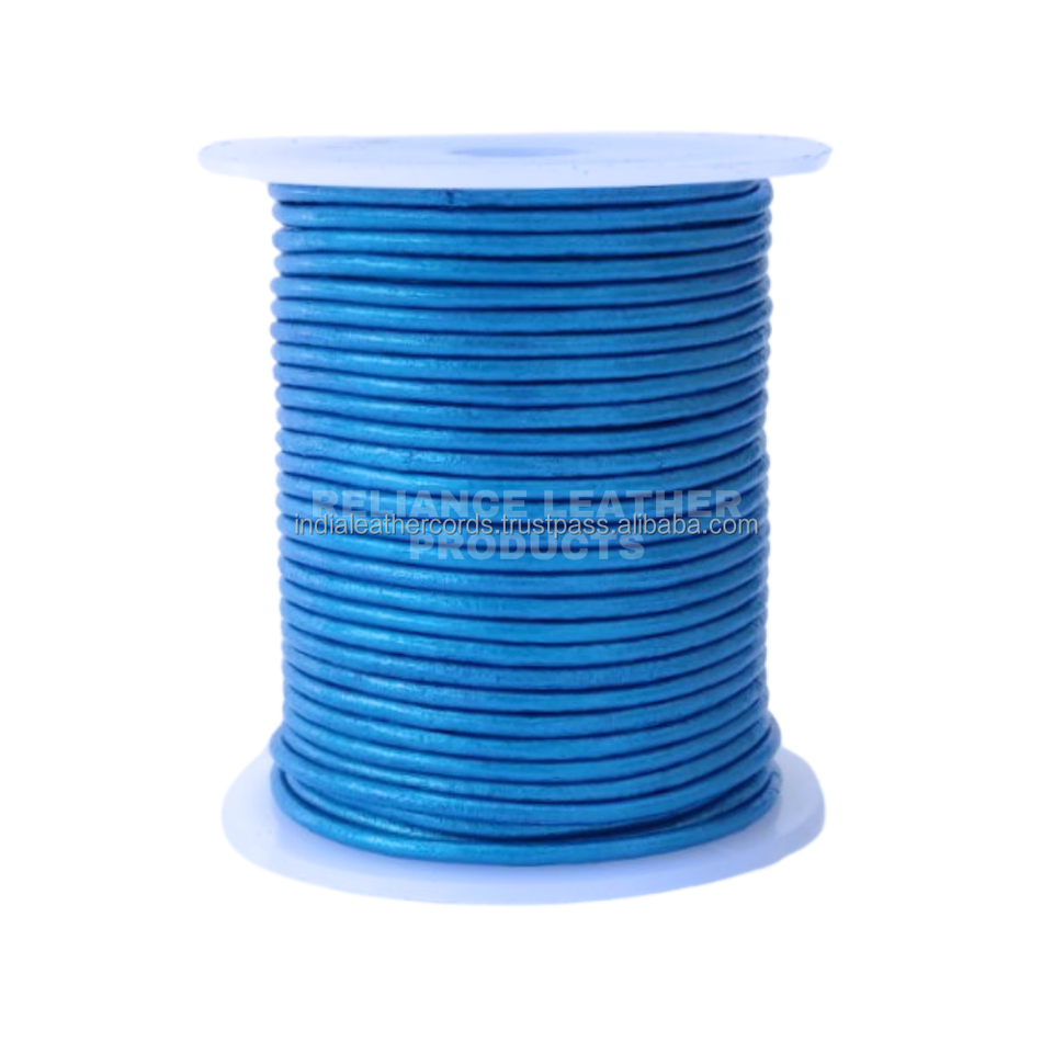 สายหนังสีฟ้าเมทัลลิกทรงกลมขนาด1-8มม. ปรับแต่งได้คุณภาพสูงสำหรับการทำเครื่องประดับและอุปกรณ์หัตถกรรมสร้อยข้อมือ