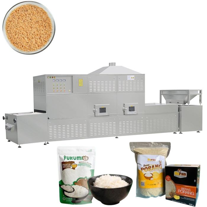 เตาอบข้าวอัตโนมัติสแตนเลสใหม่เอี่ยม ปรับแต่งได้ 200-500 กก./ชม. สำหรับผลิตข้าวสังเคราะห์ GI ต่ำ