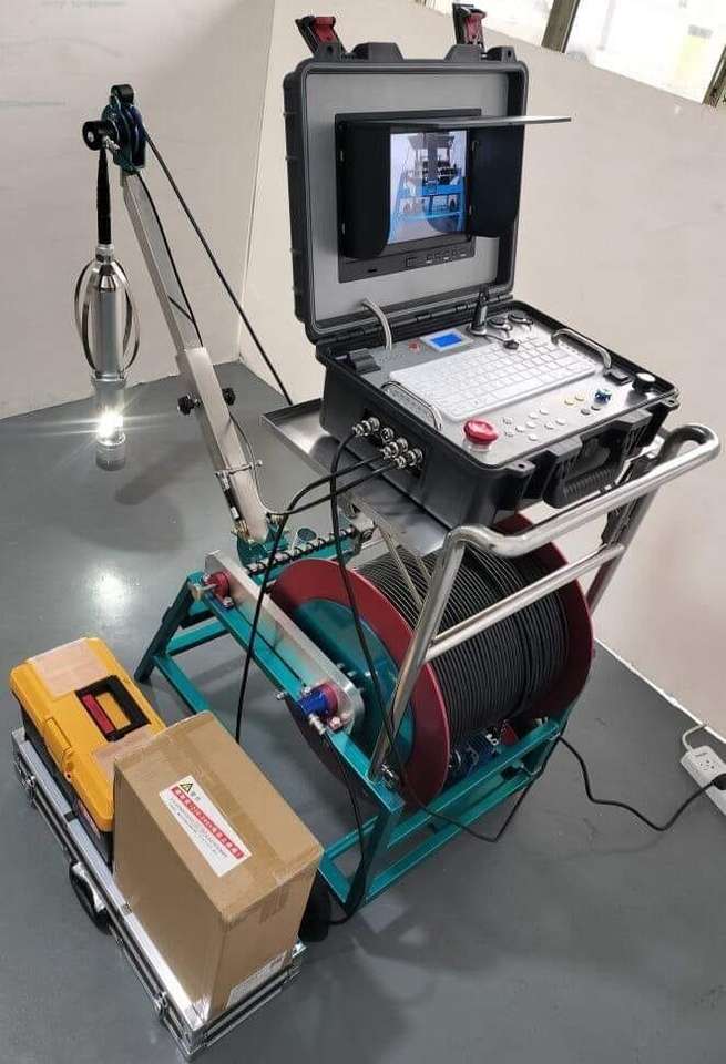 กล้องตรวจสอบหลุมเจาะแบบปรับแต่งได้ 300 ม. และ 500 ม. กล้องโทรทัศน์สำหรับบ่อน้ำลึก จอภาพใต้น้ำสำหรับขาย พร้อมจัดส่งรวดเร็ว
