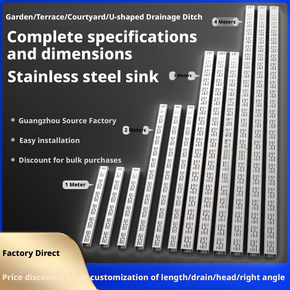 รางระบายน้ำสแตนเลส 304 แบบปรับแต่งได้ – อุปกรณ์เสริมคุณภาพสูง สไตล์มาตรฐาน