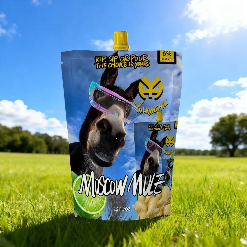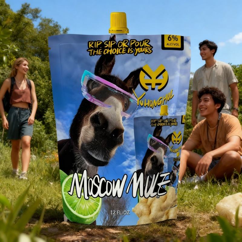กระเป๋าใส่น้ำซุปแบบสแตนด์อัพ355มล. ใส่ผลไม้ลิ้นจี่มะนาวผสมกลิ่นมะม่วงรสผลไม้3.5% ไม่มีฉลากส่วนตัวสำหรับเครื่องดื่มแบบยาว