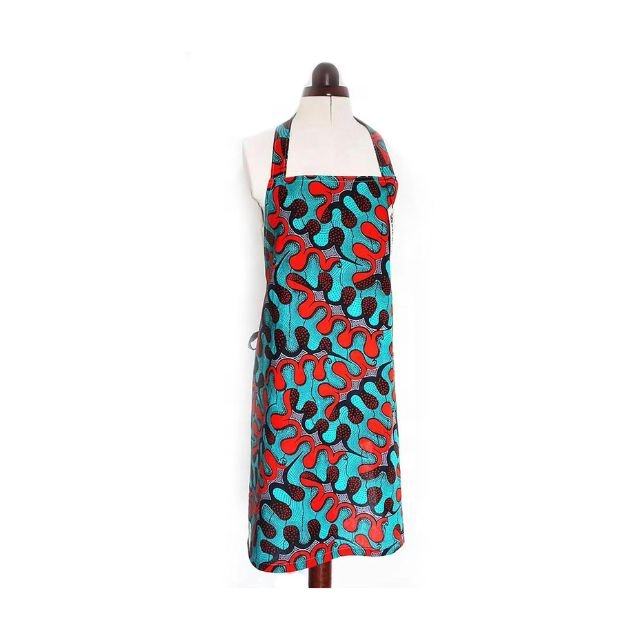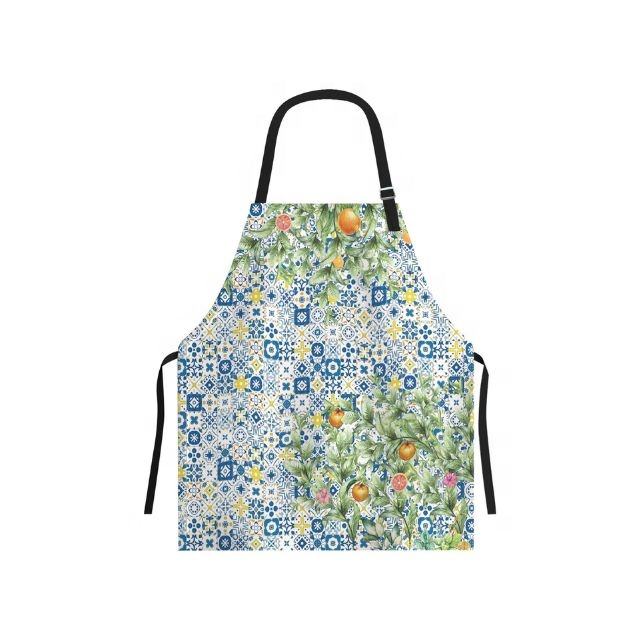 ผ้ากันเปื้อนผ้าลินินสไตล์อินเดียขนาด55-68ซม. สำหรับใช้ในครัวดีไซน์สีฟ้าผสมปักโลโก้ออกแบบได้ตามต้องการ