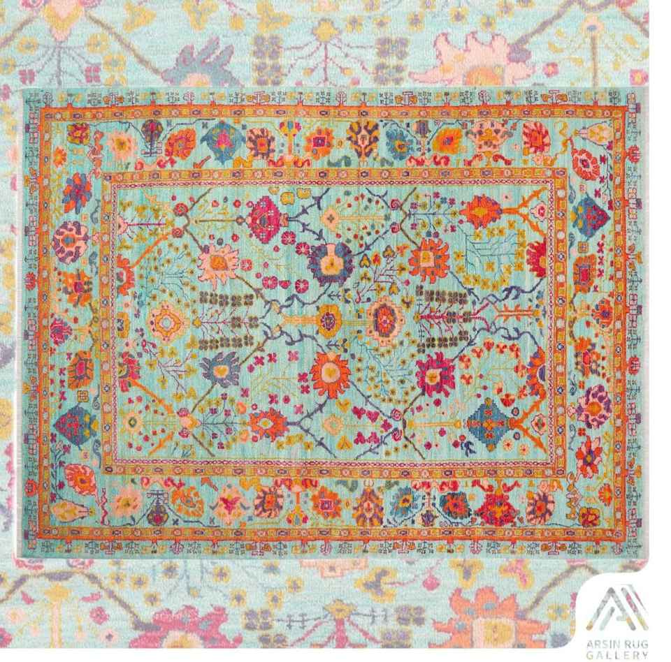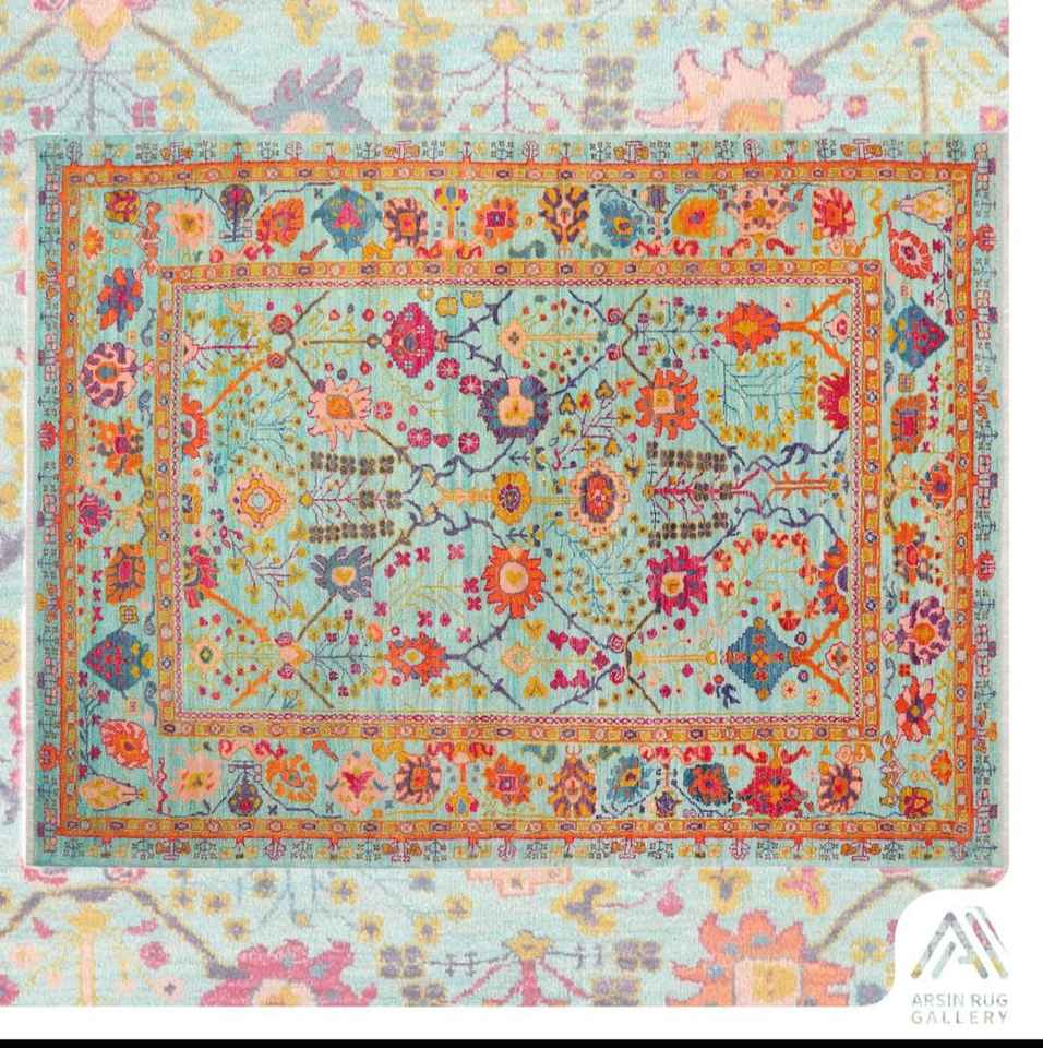 พรมปูพื้นขนาด5x8กลางปรับแต่งได้แบบแอบสแตรกต์ขนแกะตุรกีสีฟ้าเบจสำหรับห้องนอนห้องนั่งเล่นขนาดอื่น