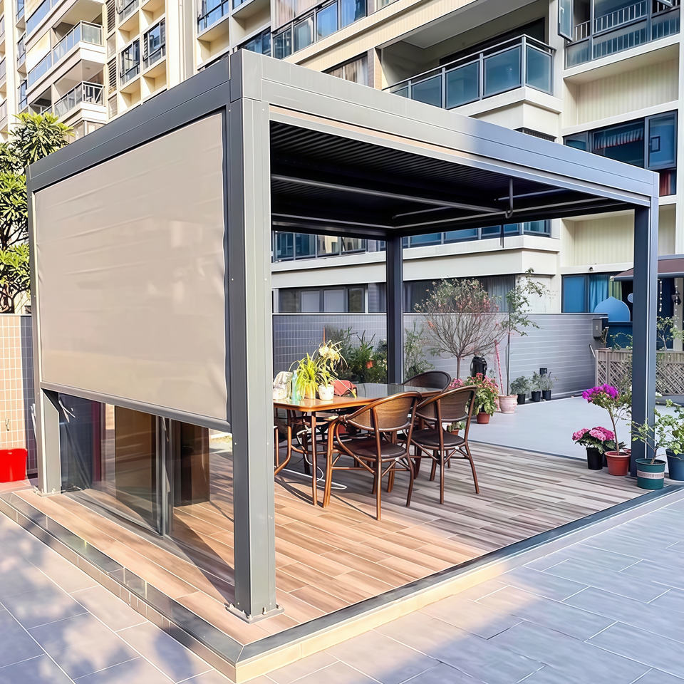 ศาลาโลหะกันน้ำกลางแจ้ง6X3X4สามารถปรับแต่งได้กันลมพร้อมไฟ LED และเคลือบผง