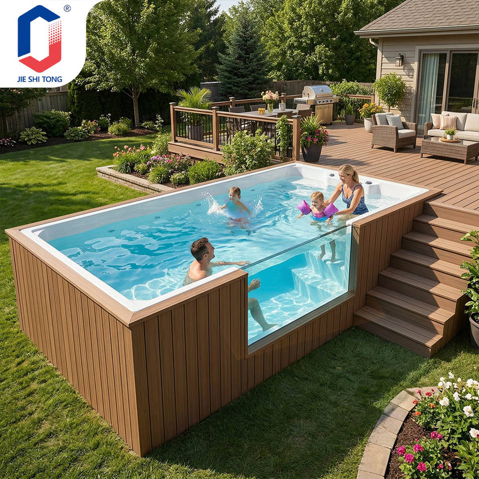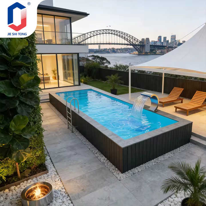 Customizable Above-Ground Fiberglass Pool with Waterfall & Leisure Seating, Rooftop Commercial & Hotel Use with Pool Pump pool