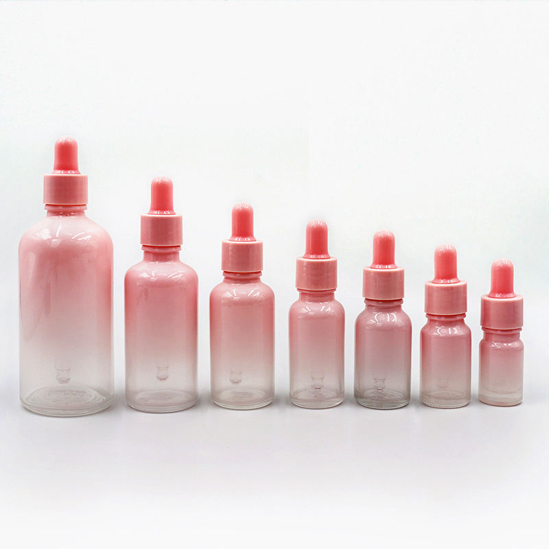 ขวดแก้วใสสีชมพูอำพันแบบกำหนดเองได้ ขนาด 1 ออนซ์ และ 2 ออนซ์ สำหรับน้ำมันหอมระเหยและเครื่องสำอาง พร้อมฝาปิด