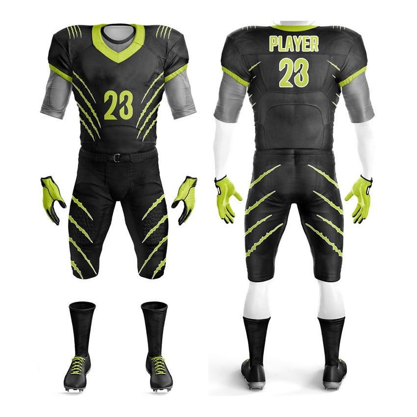 ชุดทีมอเมริกันฟุตบอลแบบปรับแต่งได้ ไซส์ใหญ่พิเศษ ชุดยูนิฟอร์มขาสั้น พร้อมโลโก้แบบกำหนดเอง สีและขนาดที่ไม่ซ้ำใคร ผลิตจากโพลีเอสเตอร์ 100%