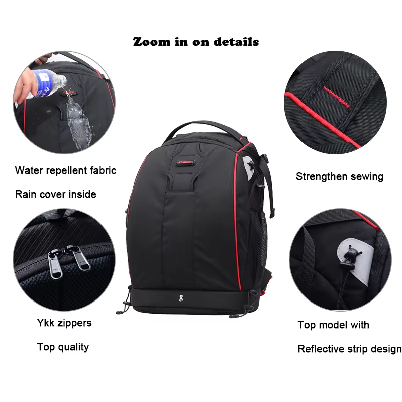 กระเป๋ากล้อง SLR ป้องกันการโจรกรรม ปรับแต่งได้ กันน้ำ บุด้วยโพลีเอสเตอร์ สำหรับถ่ายภาพกลางแจ้ง พร้อมช่องใส่เลนส์และโลโก้