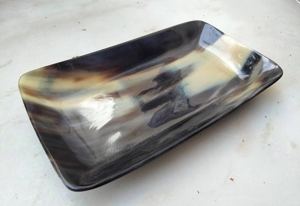 ถาดเสิร์ฟฮอร์นวัวแท้รูปควายธรรมชาติปรับแต่งได้สำหรับบ้านพร้อมโลโก้เนอสเซอรี่-แตรของแท้สำหรับถาดและฝาปิด