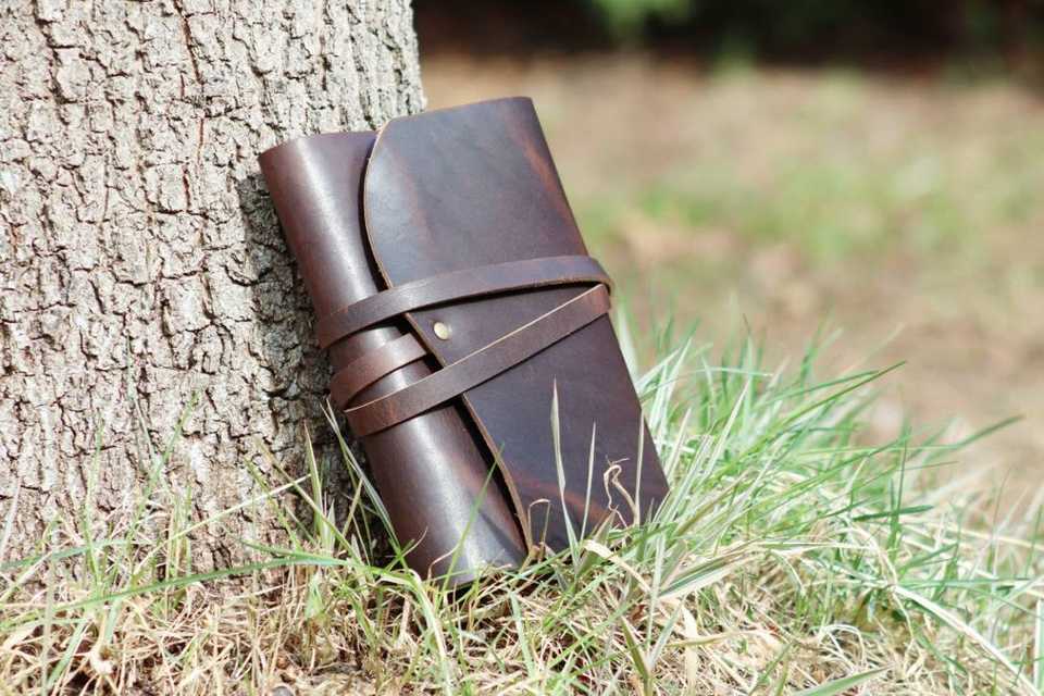 ปกสมุดรายวันแบบปรับแต่งได้ศิลปะปกหนังแท้แบบวินเทจสายหนังผ้าฝ้ายทำมือสำหรับปกแข็งทรงดินสอ