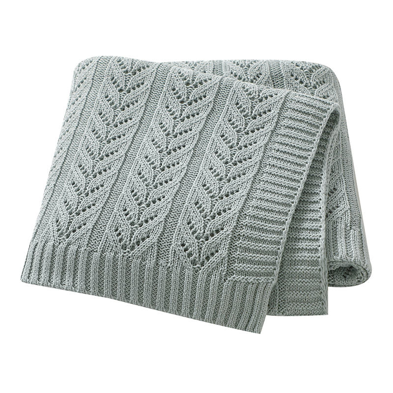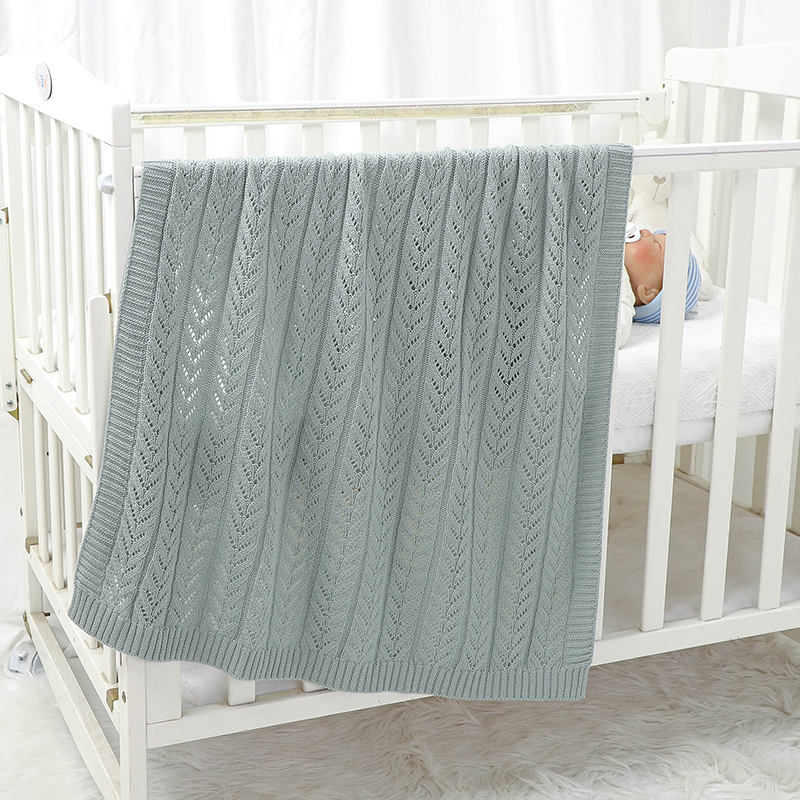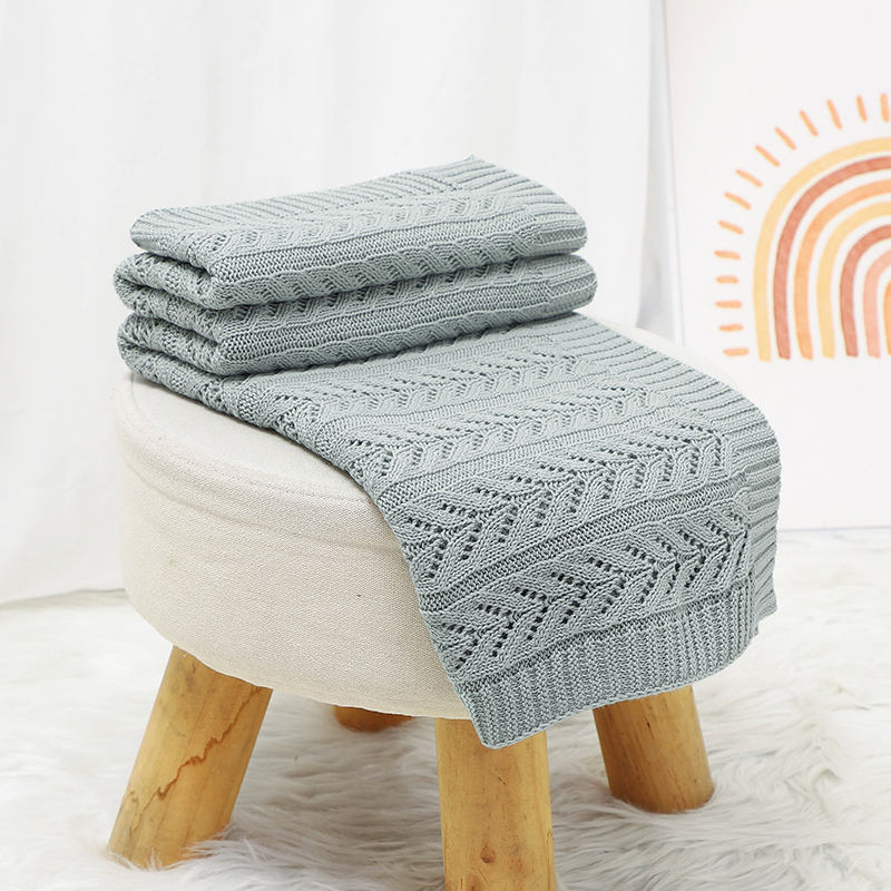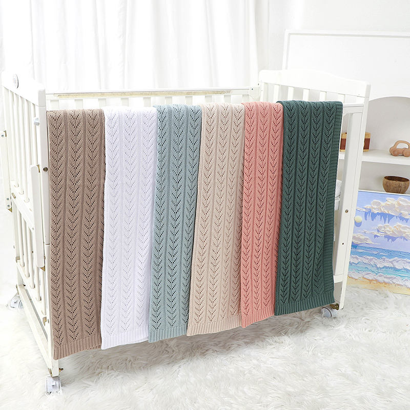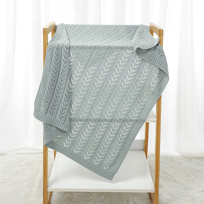ผ้าห่มสำหรับเด็กผ้าคอตตอนถักสีทึบดีไซน์กลวงปรับแต่งได้