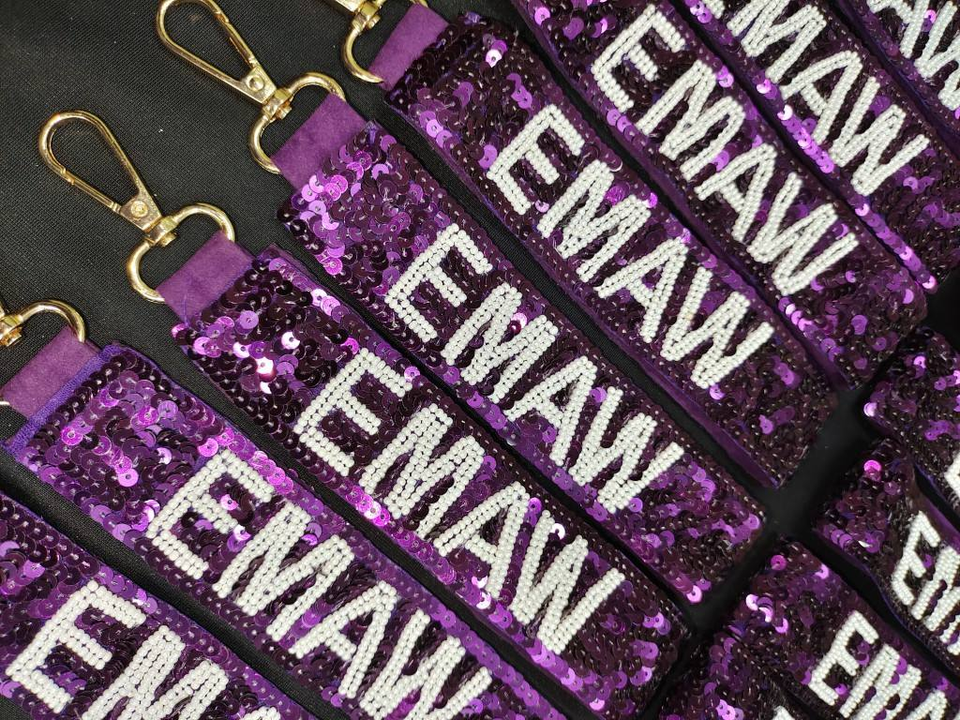 พวงกุญแจประดับเลื่อมลูกปัดสามารถปรับแต่งได้อุปกรณ์เสริมแบบปักส่วนตัวสำหรับวันครูคุณแม่เล่นเกมวันฮาวดี้