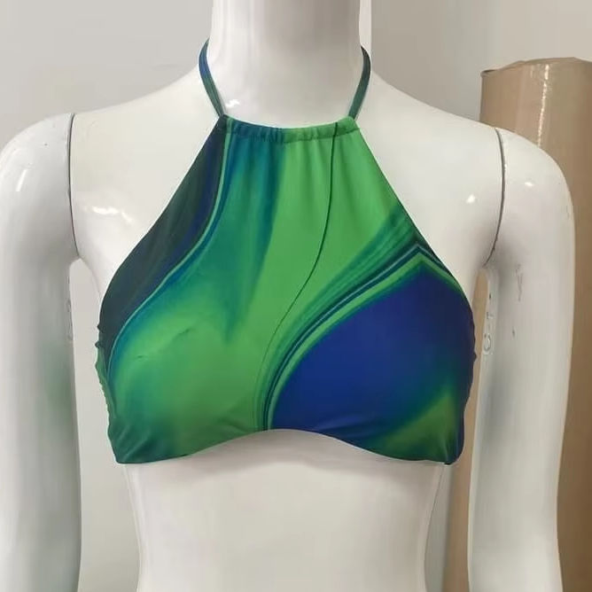 ชุดบิกินี่ปรับแต่งโลโก้ได้2ชุดที่มีเข็มขัดตาข่ายแบบเชือกผูกพร้อมพิมพ์ลาย2ชิ้นย้อมสีล้วนๆ