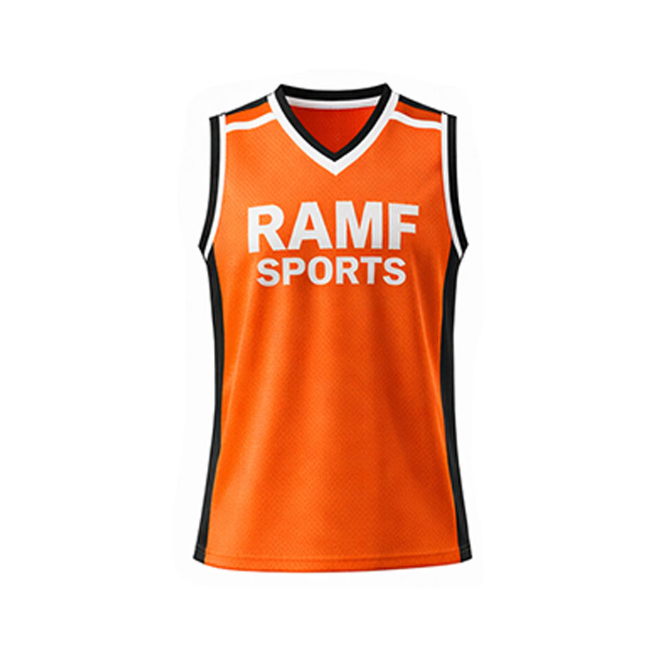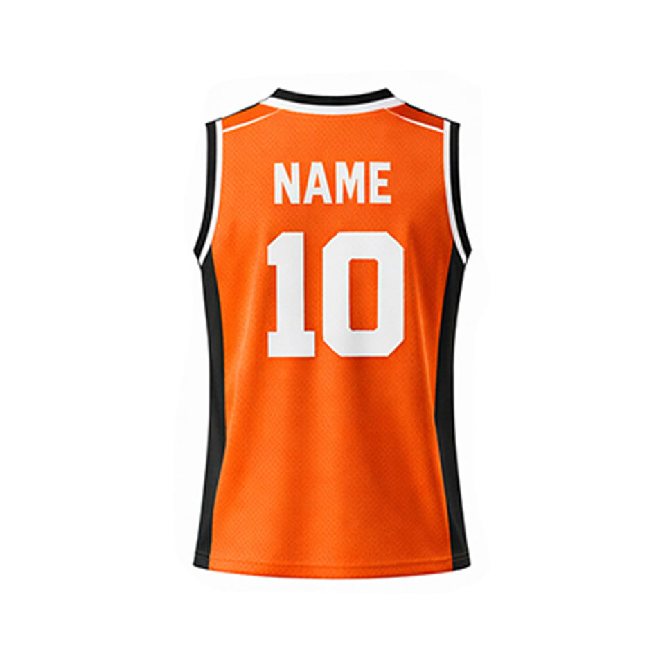 เสื้อบาสเก็ตบอลสีดำส้มแบบปรับแต่งได้ พิมพ์ลายด้วยความร้อน ดีไซน์กลับด้านได้ ไซส์ใหญ่ ระบายอากาศได้ดี แห้งเร็ว