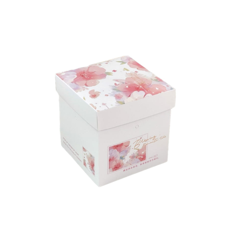 กล่องของขวัญที่ปรับแต่งได้พร้อมที่จับ-บรรจุภัณฑ์ขนาด10x10ซม. น่ารักสำหรับโอกาสพิเศษ (สีชมพู)
