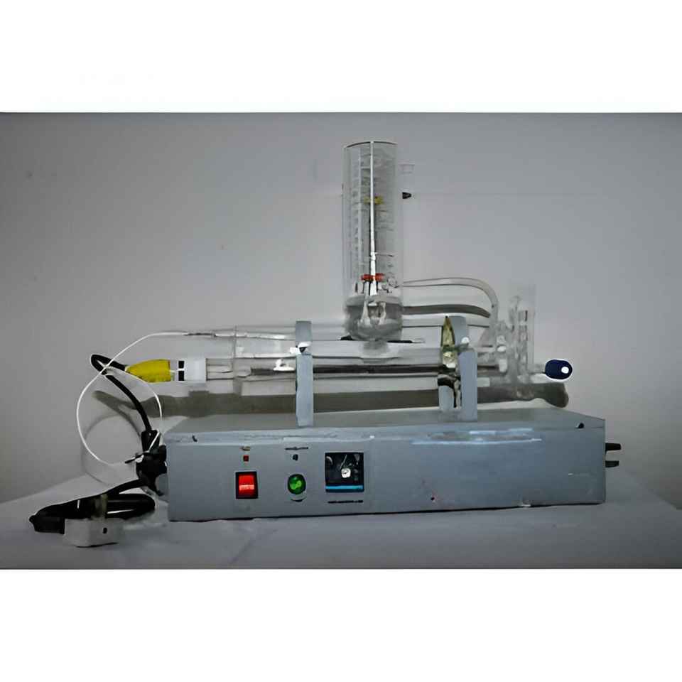 ระบบกลั่นน้ำแบบสามชั้นที่ปรับแต่งได้ ทำจากแก้วบอโรซิลิเกต พร้อมหม้อต้ม คอนเดนเซอร์ และฮีตเตอร์ควอตซ์ในตัว