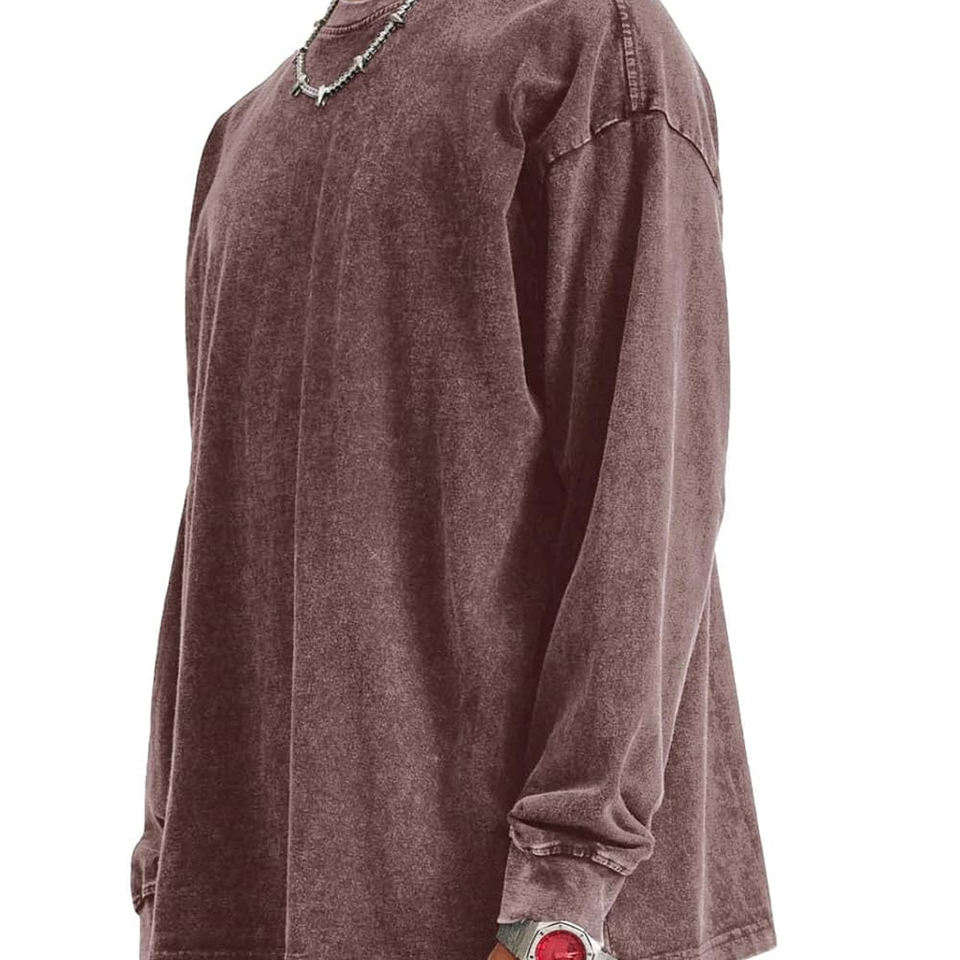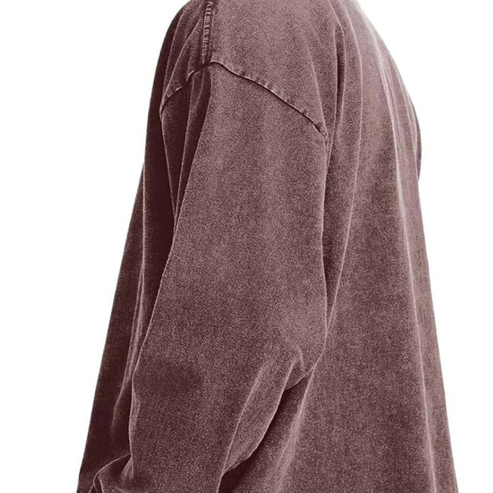 เสื้อยืดคอตตอน 100% สำหรับผู้ชาย แบบสั่งทำได้ ปริมาณมาก ล้างสีแบบแอซิดวอช แขนยาว ทรงหลวม แห้งเร็ว เสื้อยืดแขนยาวล้างสีแบบแอซิดวอช