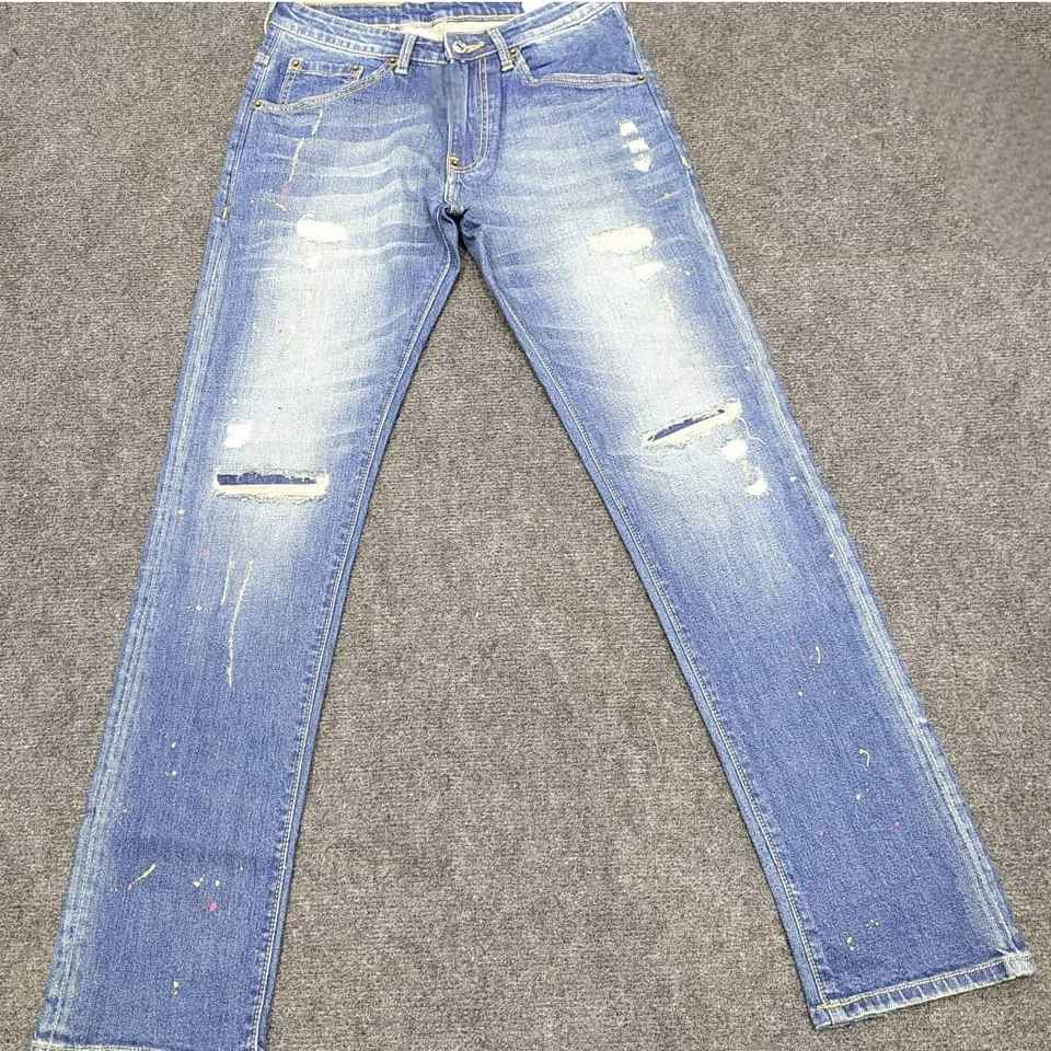 Customizable Casual Straight Jeans 100% Cotton Dark Distressed Breathable Waterproof Custom Waist Patches Plus Size Available
