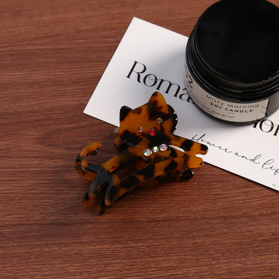 กิ๊บติดผมอะซิเตทรูปแมวแบบปรับแต่งได้ ประดับด้วยคริสตัลรูปฉลาม อุปกรณ์ตกแต่งผมทันสมัยและน่ารักสำหรับผู้หญิงและเด็กผู้หญิง ทำจากพลาสติก