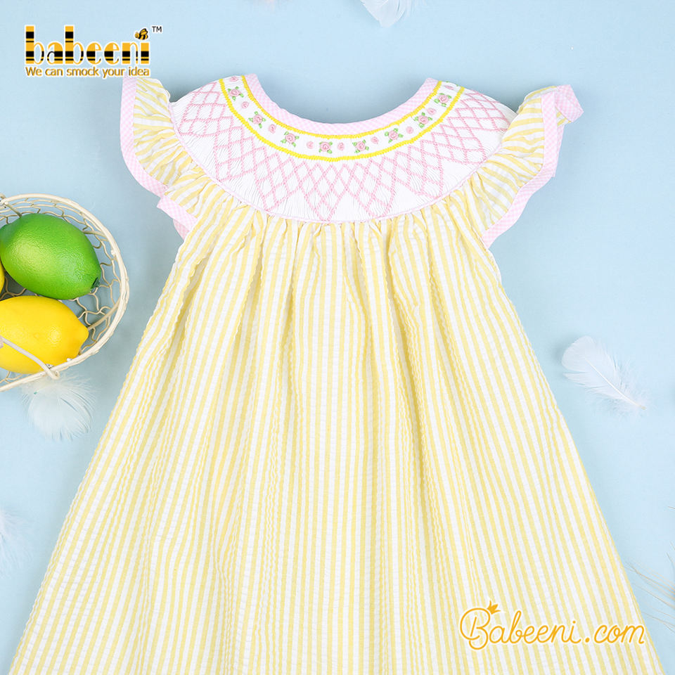 ชุดเดรสสำหรับเด็กแบบปรับแต่งได้พิมพ์ลายแถบสีเหลืองทำด้วยมือ3D ผ้าฝ้าย100% ฤดูใบไม้ร่วง BB1665เป็นมิตรกับสิ่งแวดล้อม
