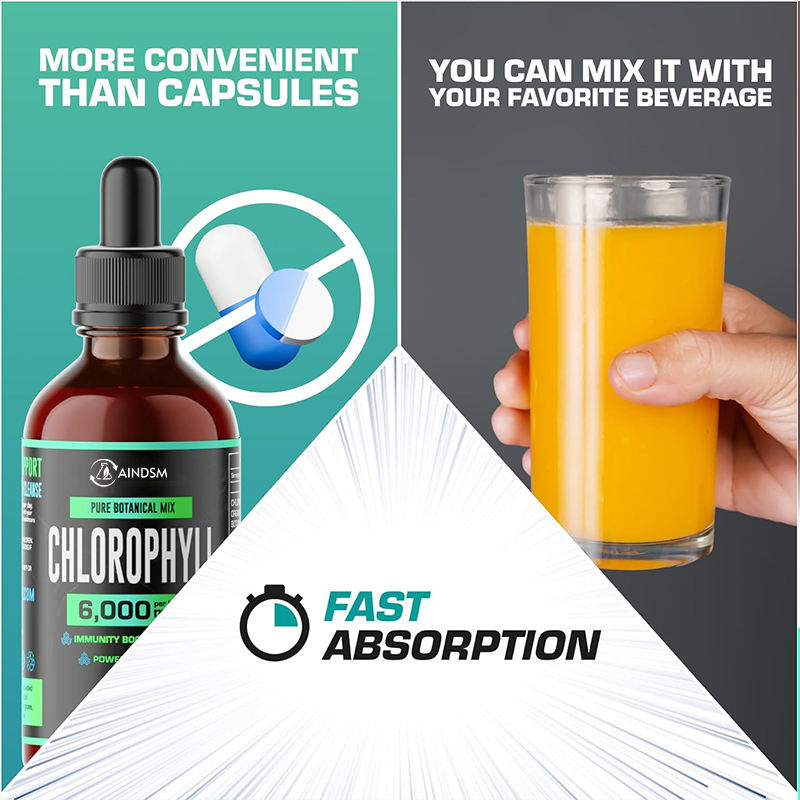 คลอโรฟิลล์ดีท็อกซ์แบบหยดปรับแต่งได้ อาหารเสริมจากธรรมชาติ คลอโรฟิลล์ผสมจากพืช ช่วยเสริมภูมิคุ้มกันและเพิ่มพลังงาน ดื่มง่ายแบบหยด
