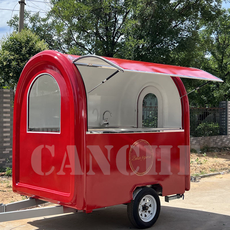 เครื่องพ่วงอาหารเคลื่อนที่สำหรับขายปลีกขนมขบเคี้ยวผลิตภัณฑ์นมขนมฮอทด็อกทำจากบาร์บีคิวทำจากข้าวโพด