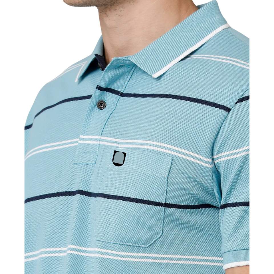 เสื้อโปโลผ้าฝ้ายปรับแต่งได้ ราคาดีที่สุด เสื้อโปโลชายลำลองลายทางแขนสั้น เสื้อโปโลชายทรงปกติสีน้ำเงิน