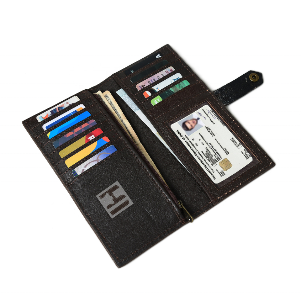 Card slots, Window slots, Cash slots, Internal zipper pocket