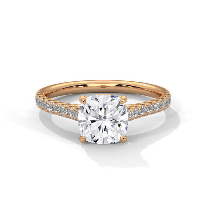 แหวนหมั้นเพชรทรงคุชชั่นคัทสั่งทำพิเศษ เพชรเพาะเลี้ยงในห้องปฏิบัติการ รับรองโดย IGI ทองคำขาว 18K น้ำหนัก 2.70 กะรัต แหวนทรงกลมหรูหรา