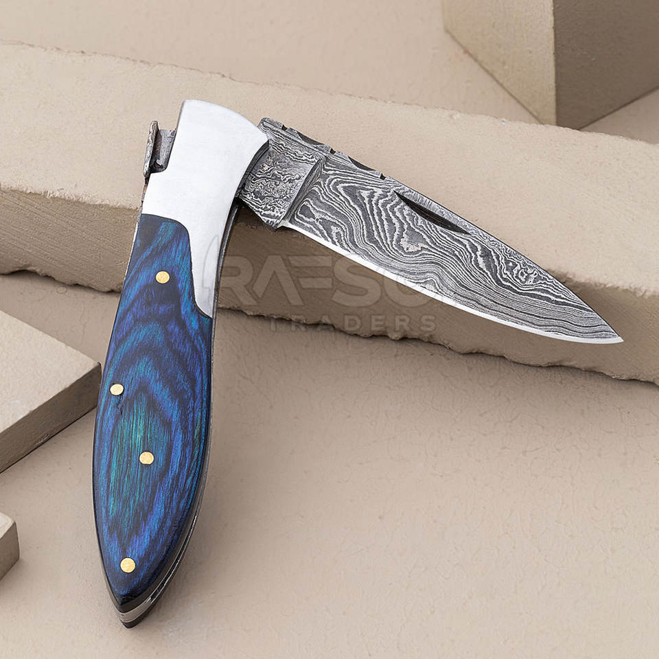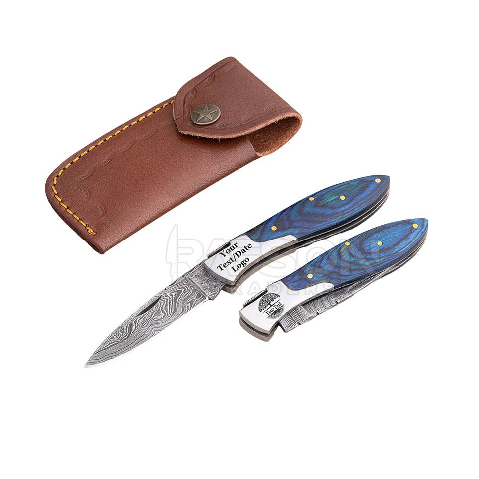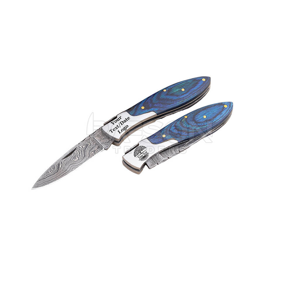 มีดพับพกพาดามัสกัสแบบปรับแต่งได้มีด้ามจับไม้พรีเมี่ยมใบมีดปลอมสำหรับโปรเจกต์การล่าสัตว์แบบทำเอง