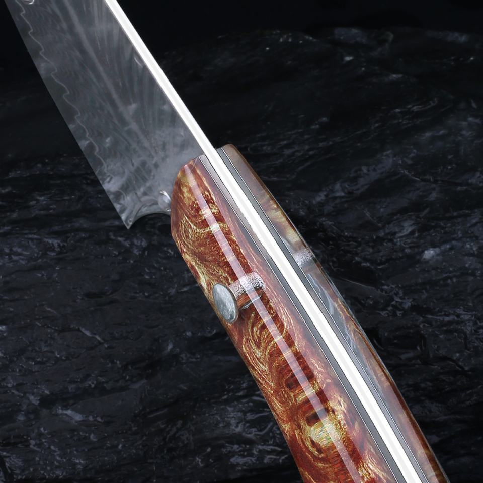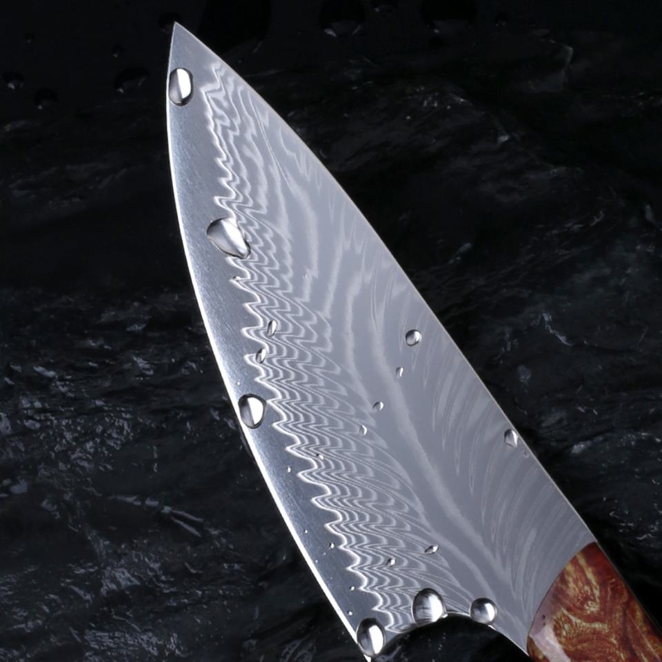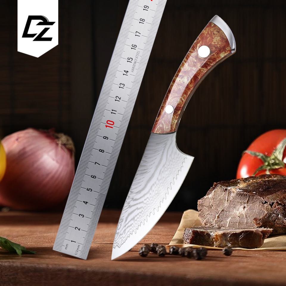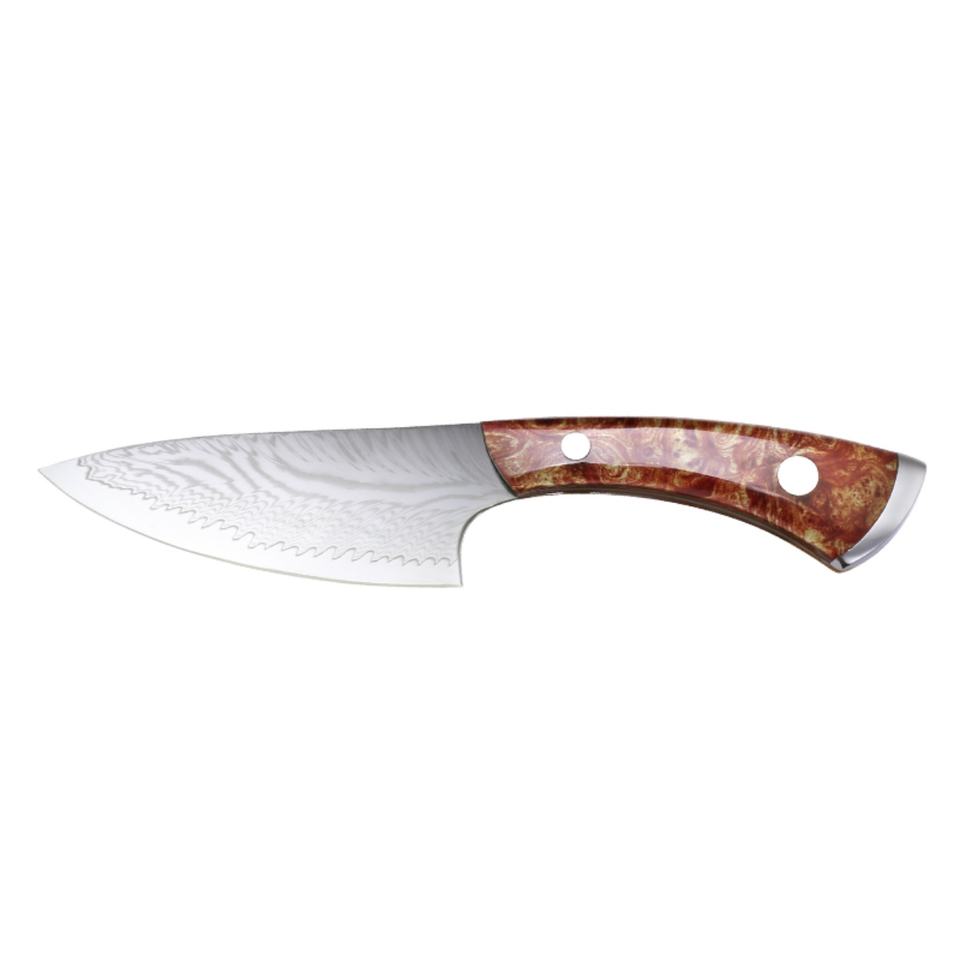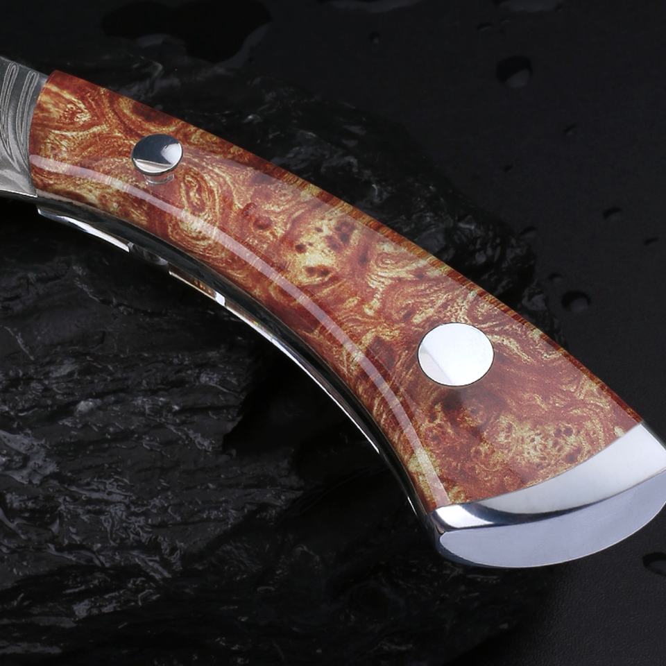 มีดพกพาเหล็กดามัสกัสสแตนเลสแบบปรับแต่งได้ พร้อมด้ามไม้ G10 สำหรับการเอาชีวิตรอดทางยุทธวิธี การล่าสัตว์ EDC DIY และ OEM มีจำหน่าย