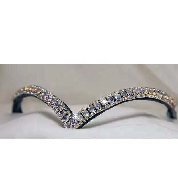 สายรัดหนังรูปตัววีลึกแบบปรับแต่งได้พร้อมแผ่นคริสตัลเย็บแฟนซีจากอินเดียสำหรับการขี่ม้า