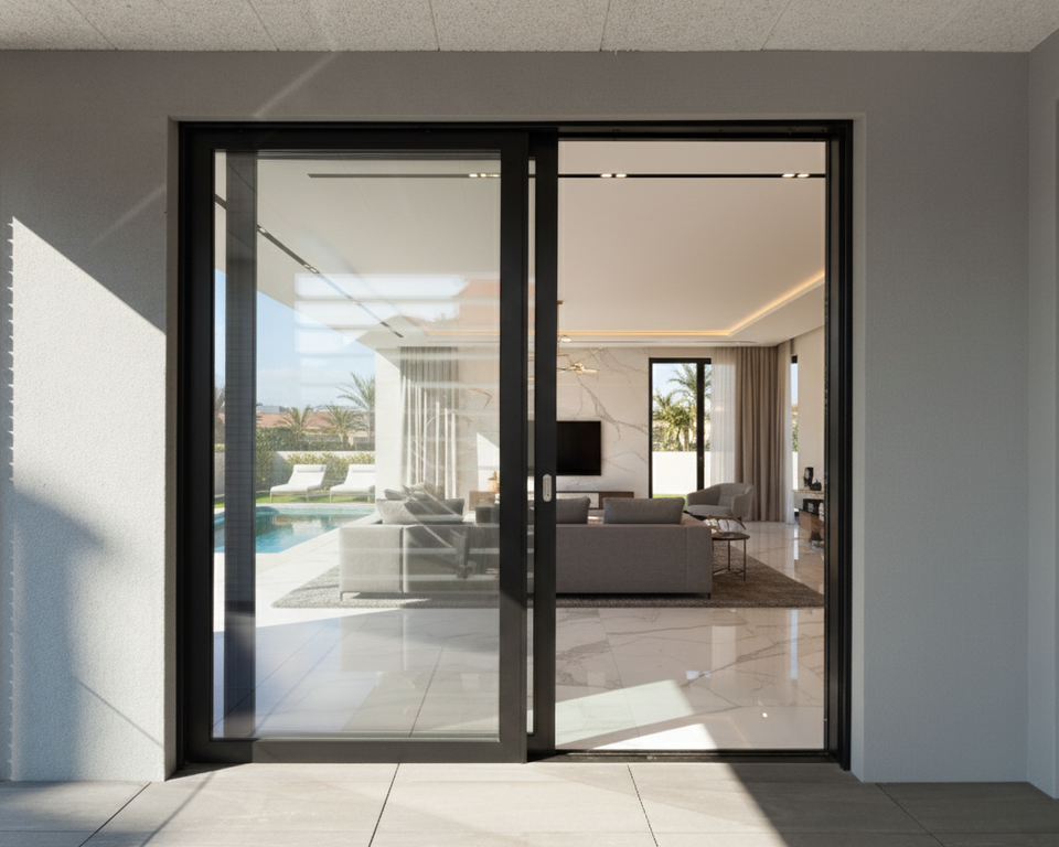 ประตูบานเลื่อนอลูมิเนียมฉนวนกันความร้อนหลายแผงฉนวนกันเสียงกระจกสองชั้นแบบปรับแต่งได้