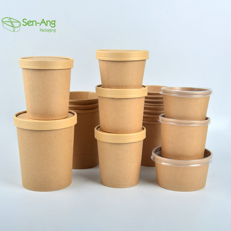 ถังกระดาษสีขาวแบบใช้แล้วทิ้งเป็นมิตรกับสิ่งแวดล้อมสำหรับซุปโจ๊กก๋วยเตี๋ยวคุกกี้พิมพ์โลโก้ได้ตามต้องการ
