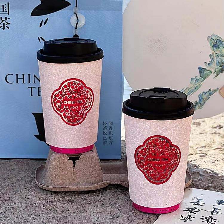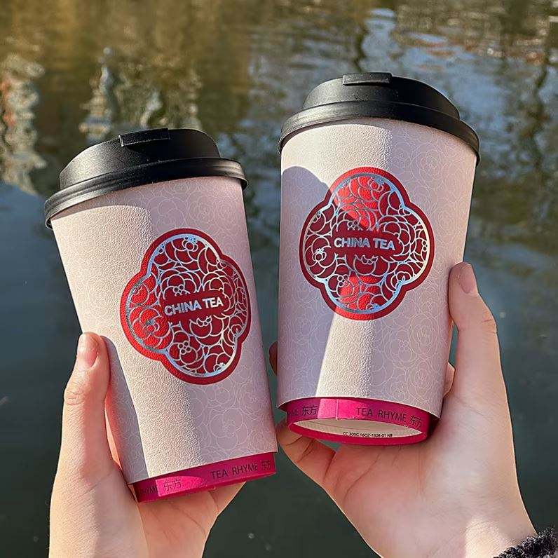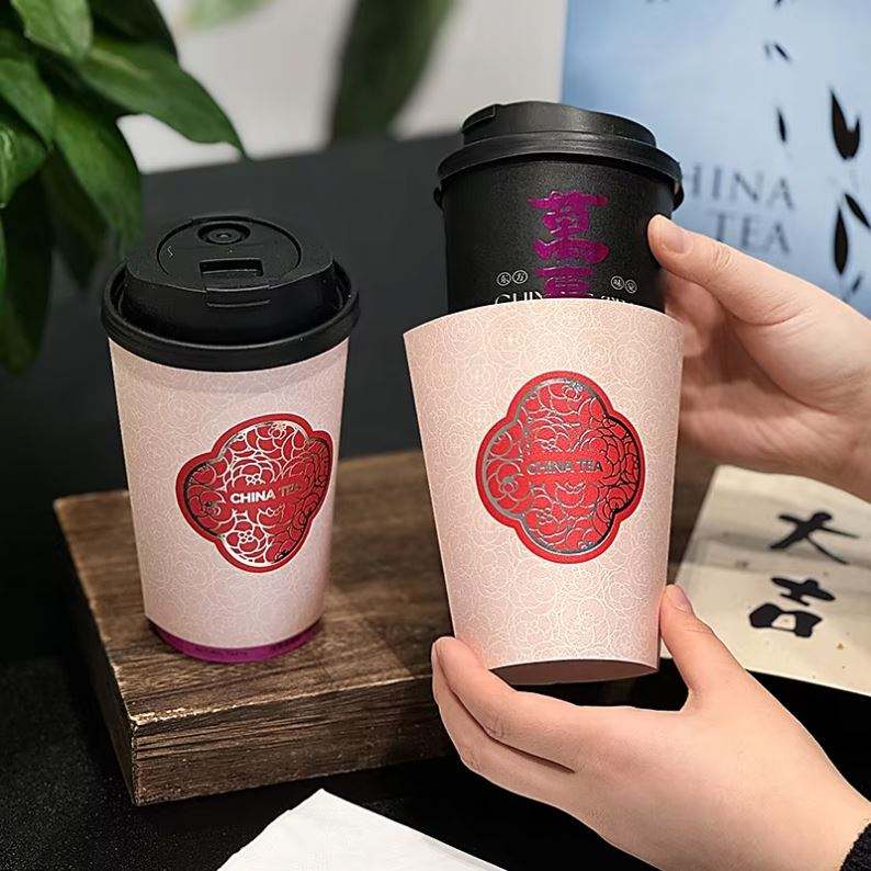แก้วกระดาษแบบใช้แล้วทิ้งที่ปรับแต่งได้ พร้อมคุณสมบัติป้องกันความร้อนลวก ลายเงินนูนด้วยเทคโนโลยีพิเศษ ฝาปิดอเนกประสงค์