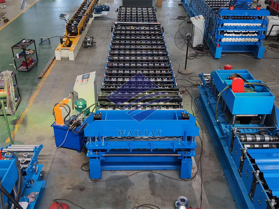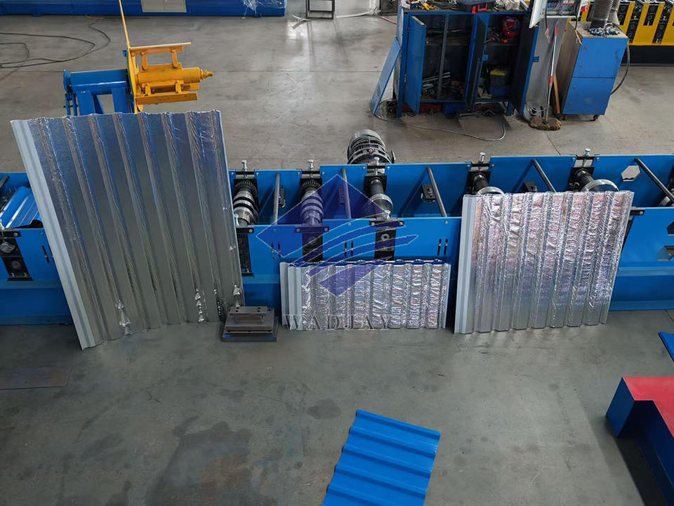 เครื่องม้วนแผ่นหลังคาขึ้นรูปกระเบื้องเหล็กชุบสังกะสีลูกฟูกสองชั้นปรับแต่งได้พร้อมเครื่องยนต์