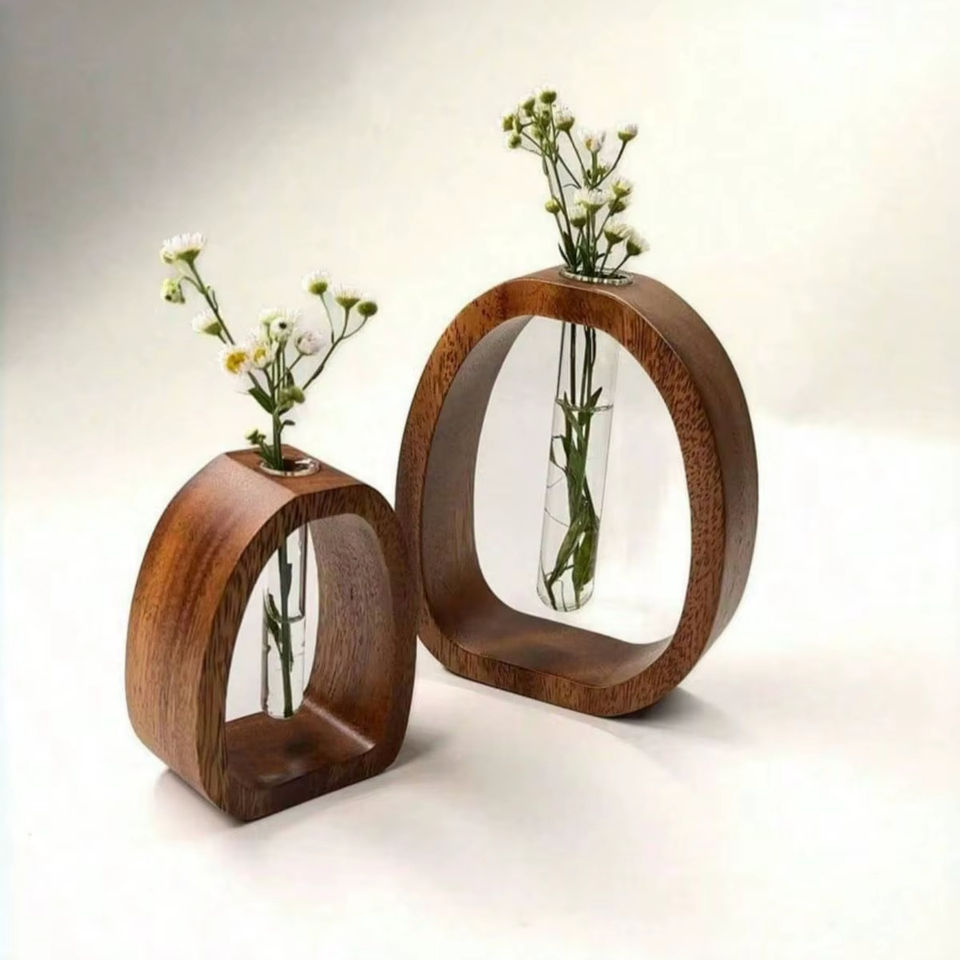 แจกันดอกไม้ไม้เนื้อแข็งแบบปรับแต่งได้ ทนทาน เหมาะสำหรับตกแต่งโต๊ะทำงานสไตล์โมเดิร์น ด้วยดีไซน์เรียบง่ายและผิวสัมผัสขัดเงาอย่างเป็นธรรมชาติ