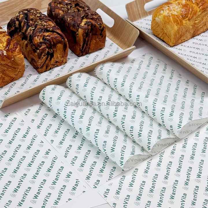 กระดาษกันไขมันเคลือบ PE เกรดอาหาร ปลอดภัยต่อสิ่งแวดล้อม ปรับแต่งได้ สำหรับบรรจุภัณฑ์ขนมปัง เค้ก และของว่าง