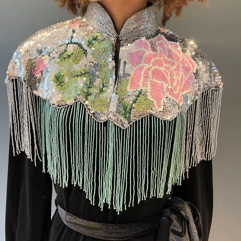 เครื่องประดับ:Sequined, เย็บปักถักร้อย, กระดุม, ทำเป็นชั้น