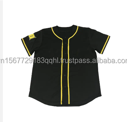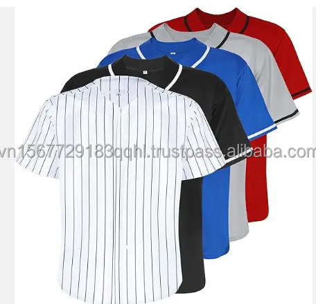 เสื้อเบสบอลซอฟต์บอลสำหรับผู้ใหญ่แบบพิมพ์ลายได้ตามต้องการ สีดำลายทาง กระดุมติด แขนสั้น ชุดทีมแบบเรียบง่าย ชุดกีฬาแห้งเร็ว