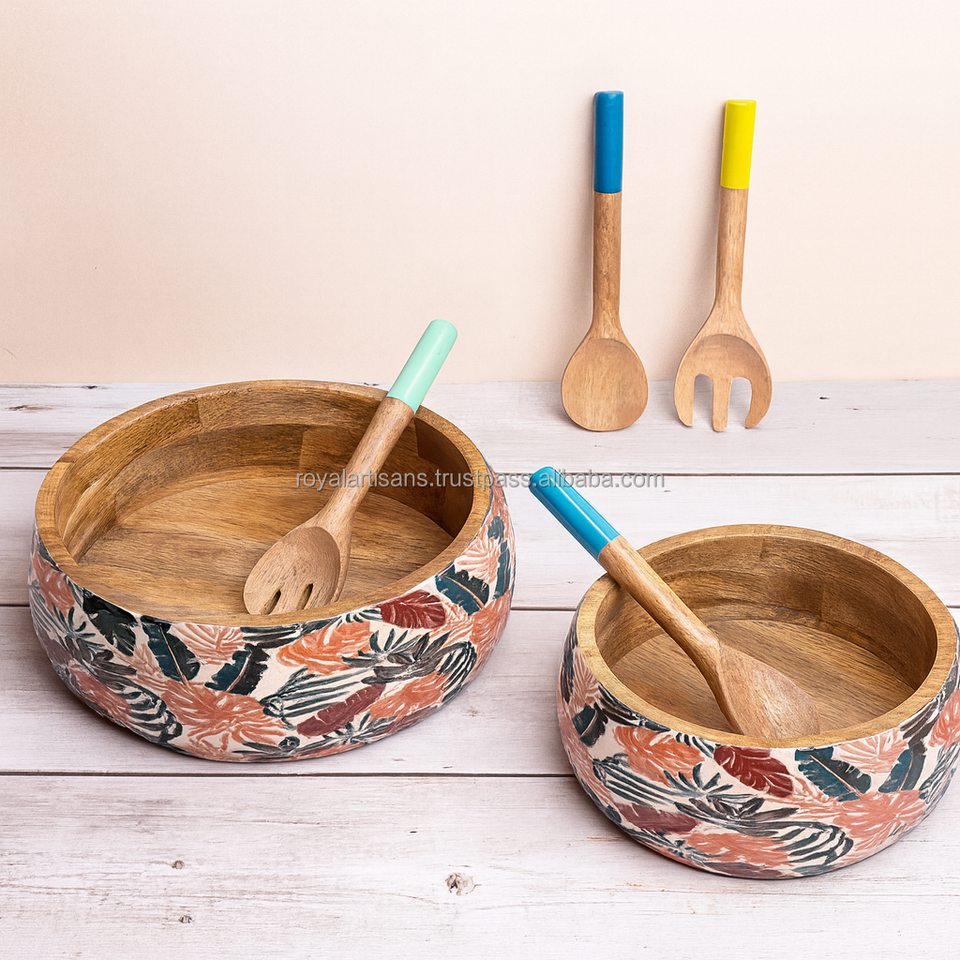 ชามไม้มะม่วงเคลือบเงาแบบปรับแต่งได้ งานแฮนด์เมด พร้อมที่เสิร์ฟ พิมพ์ลายคุณภาพสูง ใช้ได้หลากหลาย ทั้งเป็นชามสลัด