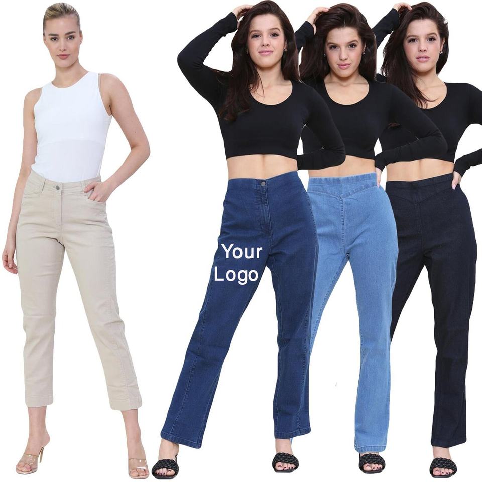 กางเกงยีนส์ขายาวสำหรับผู้หญิงกางเกงยีนส์ทรงสกินนี่ออกแบบโลโก้ได้ตามต้องการ