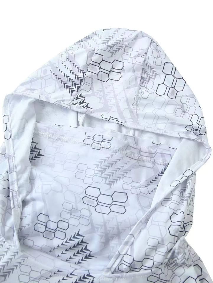 เสื้อฮู้ดกันแดดตกปลาแบบปรับแต่งได้ ลายพิมพ์เรขาคณิต ระบายอากาศด้วยตาข่าย ปิดคลุมทั้งใบหน้า UPF35+ สำหรับตกปลาและกิจกรรมกลางแจ้ง